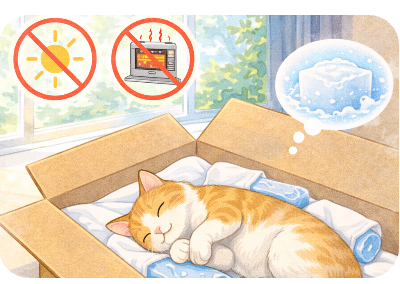 夏場や暖かい季節は腐敗が早く進みやすいため、保冷剤やドライアイスで体を冷やすことが大切です。保冷剤はタオルで包み、お腹や背中の周りに置くと効果的です。また、直射日光や暖房を避け、涼しい静かな場所に安置してください。