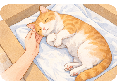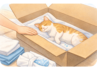 呼吸や心拍が止まっているかを静かに確認し、まずは遺体を安置する準備をしましょう。清潔なタオルやバスタオル、ペットシーツを用意し、段ボール箱や布を敷いた落ち着いた場所を整えます。体液が出る場合がありますので、下に敷くものは必ず多めに用意してください。